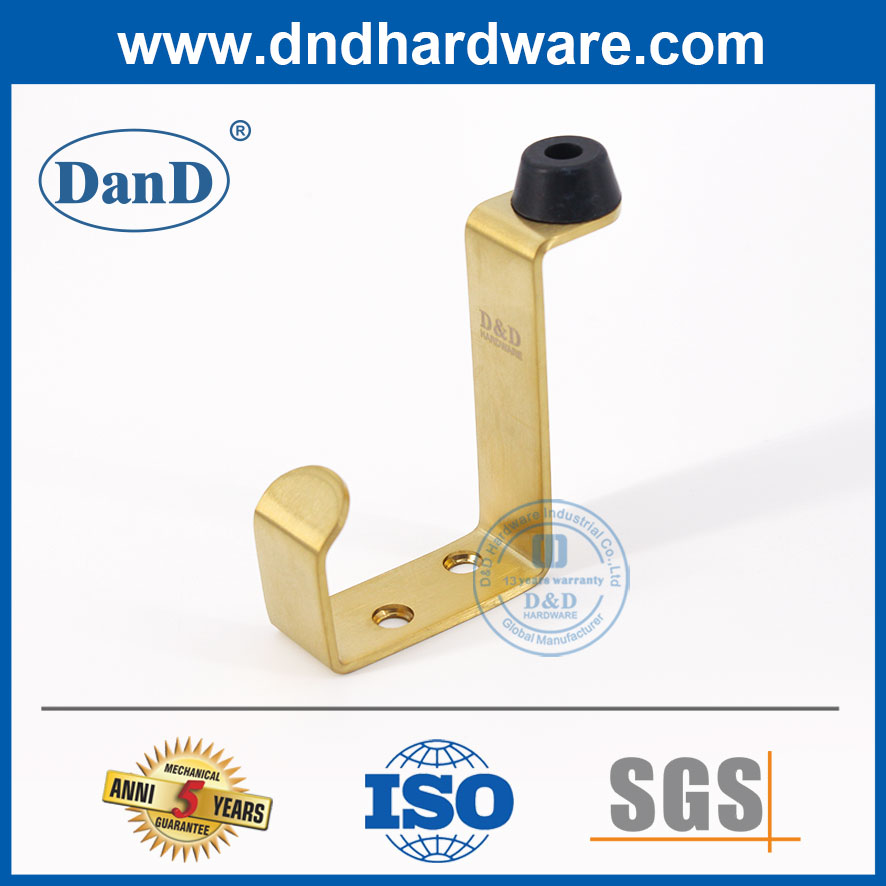 Wall-DDDS024에 코트 후크가 있는 새틴 황동 스테인레스 스틸 골든 도어 스토퍼